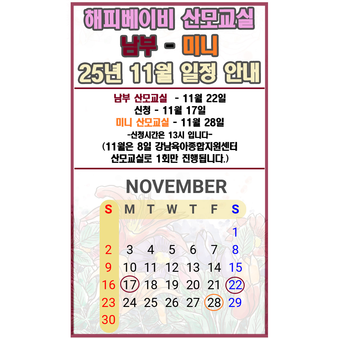 2025년 11월 해피베이비 부부산모교실 일정안내