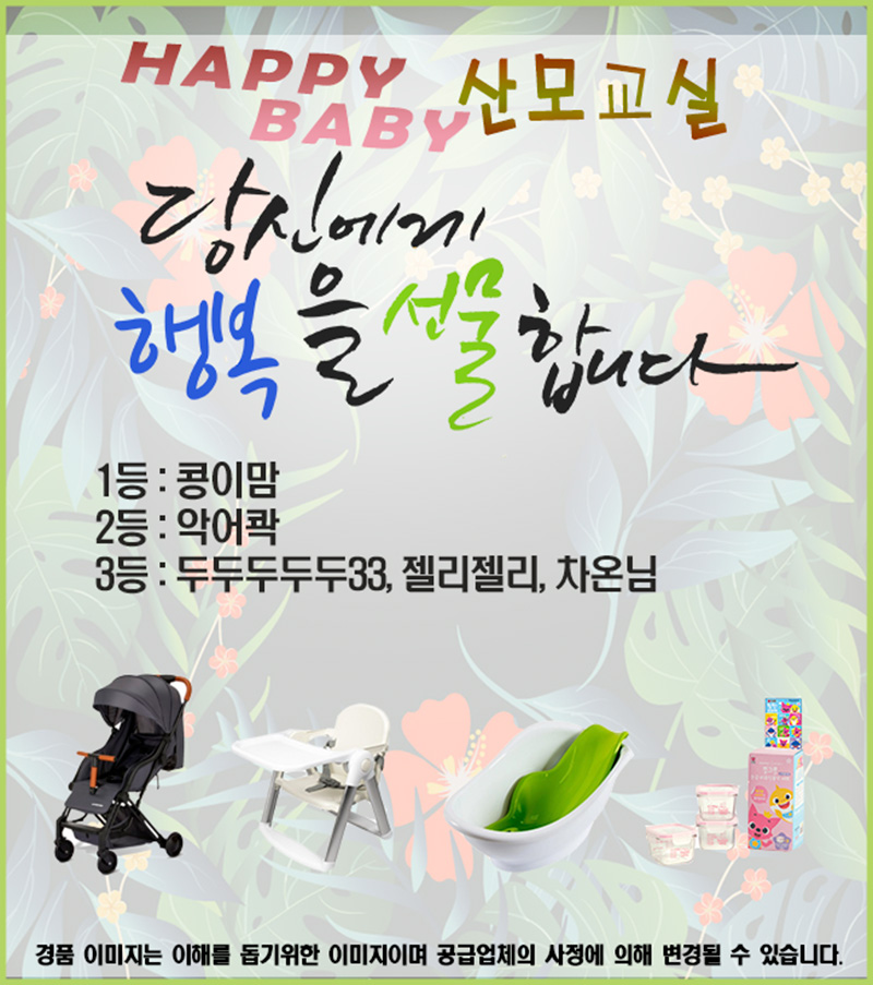 해피베이비 산모교실 26년 1월 첫번째교실- 후기이벤트 당첨자 안내