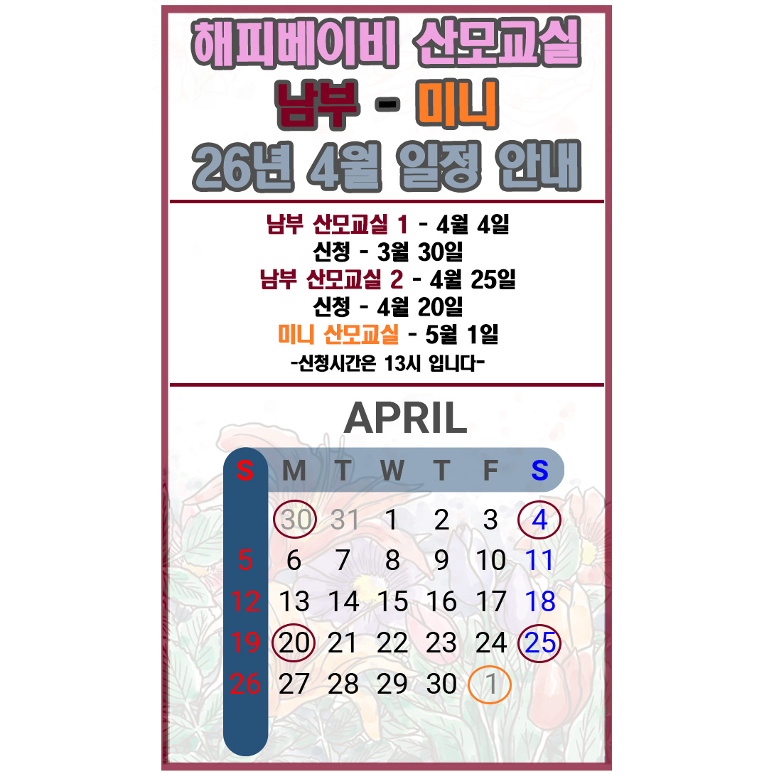 2026년 4월 해피베이비 부부산모교실 일정안내