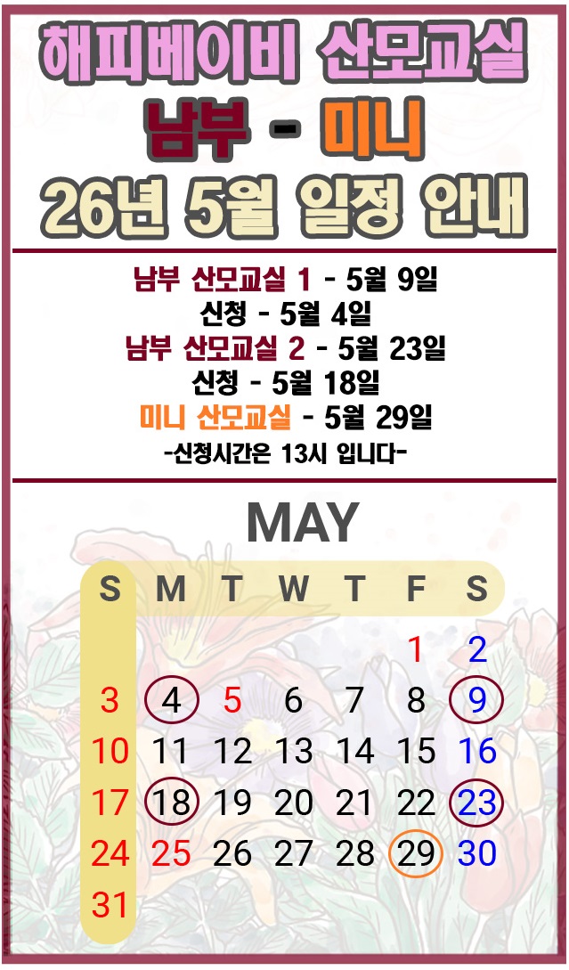 2026년 5월 해피베이비 부부산모교실 일정안내