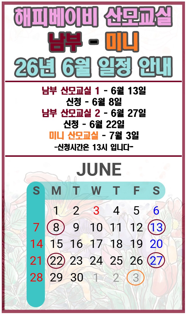 2026년 6월 해피베이비 부부산모교실 일정안내